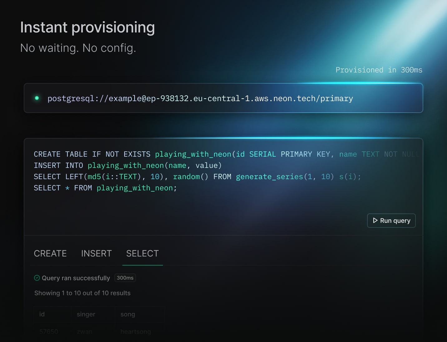 • Postgres in under a second: Instantly provison a Postgres database on Neon